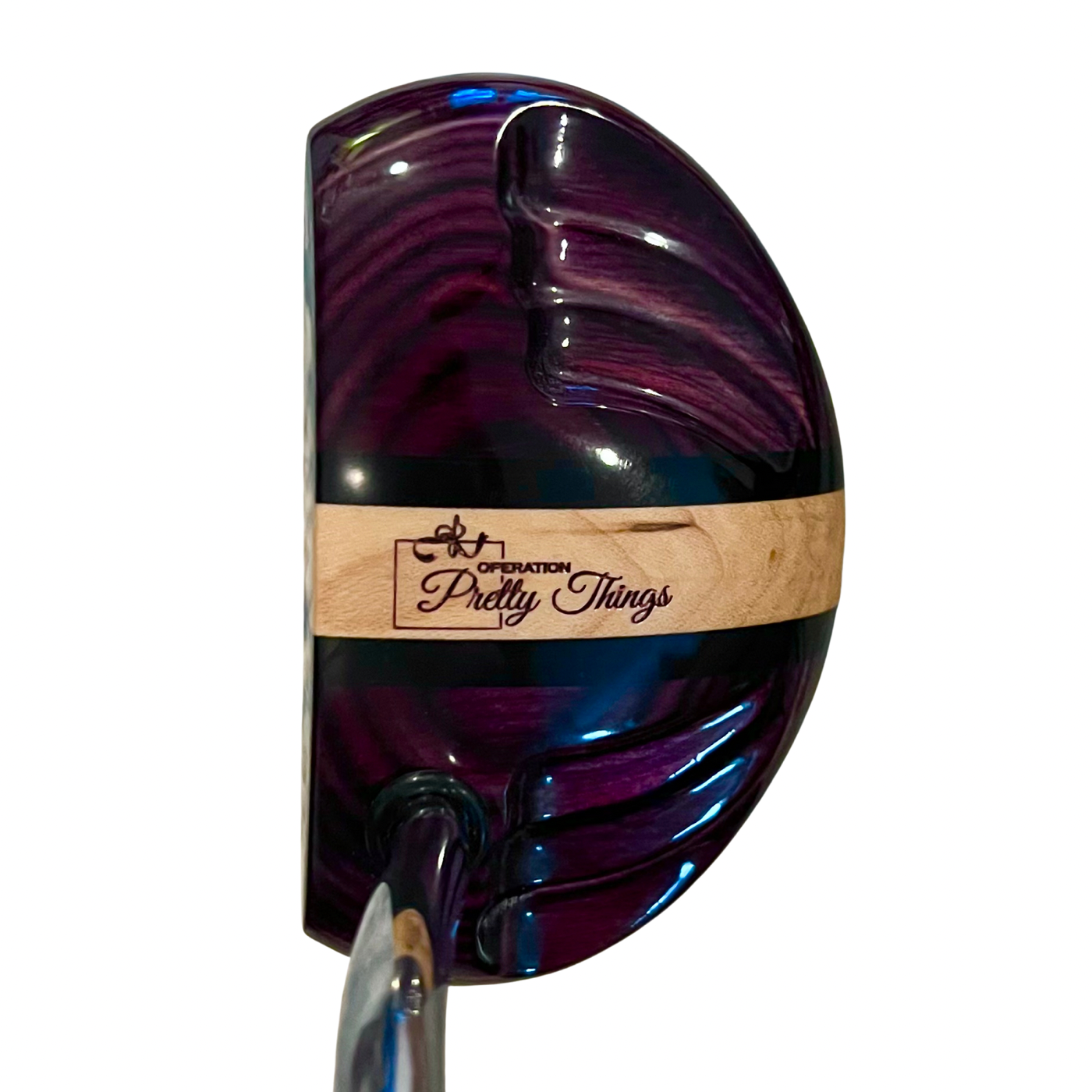 Purple Heart & Maple wood putter, made with precision and custom engraved for Operation Pretty Things!